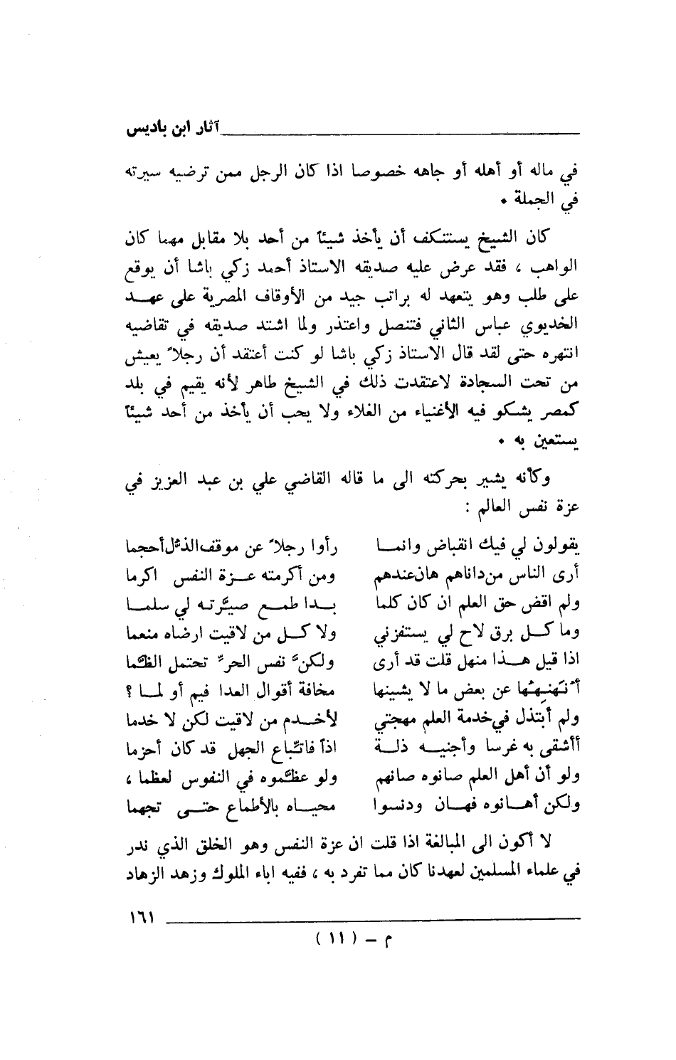 لا أكون إلى المبالغة إذا قلت أن عزة النفس وهو الخلق الذي ندر في علماء المسلمين لعهدنا كان مما تفرد به، ففيه إباء الملوك وزهد الزهاد