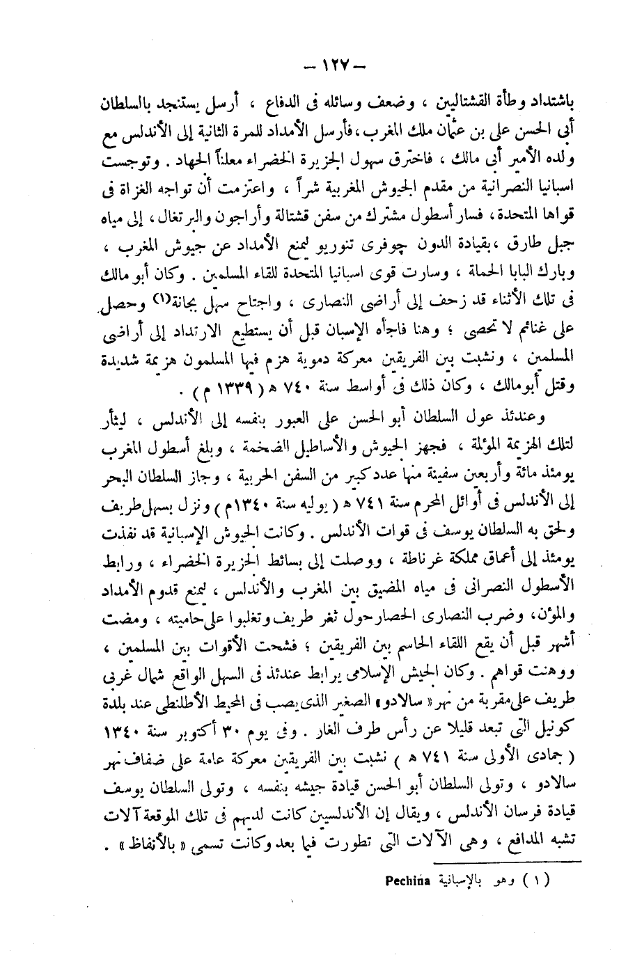 باشتداد وطأة القشتاليين، وضعف وسائله فى الدفاع، أرسل يستنجد بالسلطان أبى الحسن علىّ بن عثمان ملك المغرب، فأرسل الأمداد للمرة الثانية إلى الأندلس مع ولده الأمير أبى مالك، فاخترق سهول الجزيرة الخضراء معلناً الجهاد. وتوجست اسبانيا النصرانية من مقدم الجيوش المغربية شراً، واعتزمت أن تواجه الغزاة فى قواها المتحدة، فسار أسطول مشترك من سفن قشتالة وأراجون والبرتغال، إلى مياه جبل طارق، بقيادة الدون جوفرى تنوريو ليمنع الأمداد عن جيوش المغرب، وبارك البابا الحملة، وسارت قوى اسبانيا المتحدة للقاء المسلمين. وكان أبو مالك فى تلك الأثناء قد زحف إلى أراضى النصارى، واجتاح سهل بجانة (¬1) وحصل على غنائم لا تحصى؛ وهنا فاجأه الإسبان قبل أن يستطيع الارتداد إلى أراضى المسلمين، ونشبت بين الفريقين معركة دموية هزم فيها المسلمون هزيمة شديدة وقتل أبو مالك، وكان ذلك فى أواسط سنة 740 هـ (1339 م).