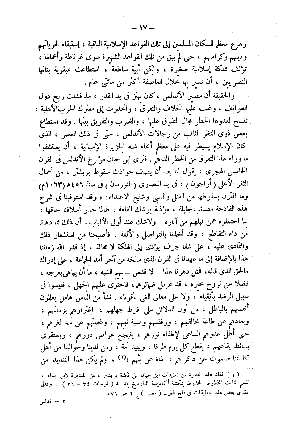 (¬1) نقلنا هذه الفقرة من تعليقات ابن حيان على نكبة بربشتر، عن الذخيرة لابن بسام، القسم الثالث المخطوط المحفوظ بمكتبة أكاديمية التاريخ بمدريد (لوحات 34 - 36). ونقل المقري بعض هذه التعليقات في نفح الطيب (مصر) ج 2 ص 576.