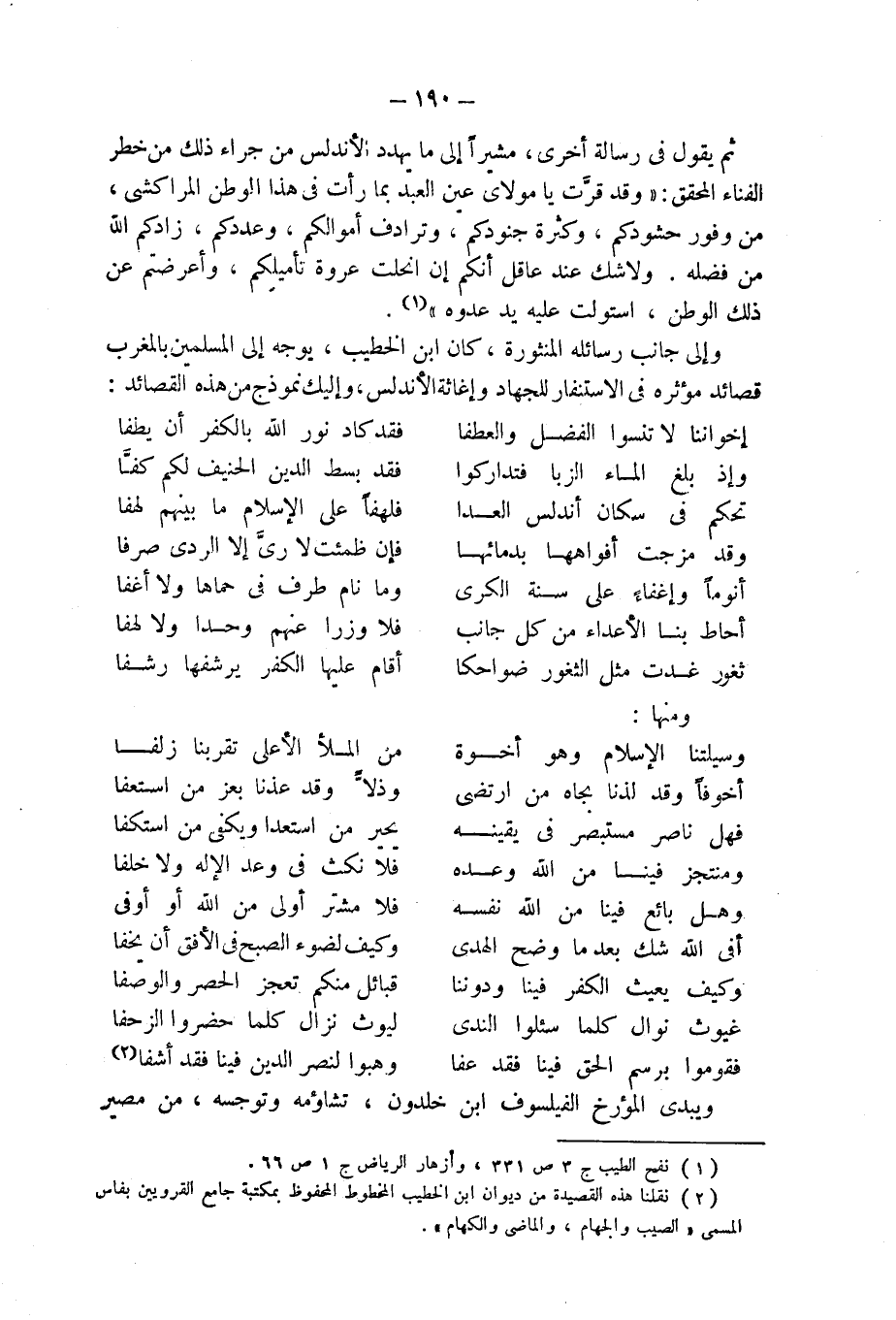 (¬2) نقلنا هذه القصيدة من ديوان ابن الخطيب المخطوط المحفوظ بمكتبة جامع القرويين بفاس المسمى " الصيب والجهام، والماضى والكهام".