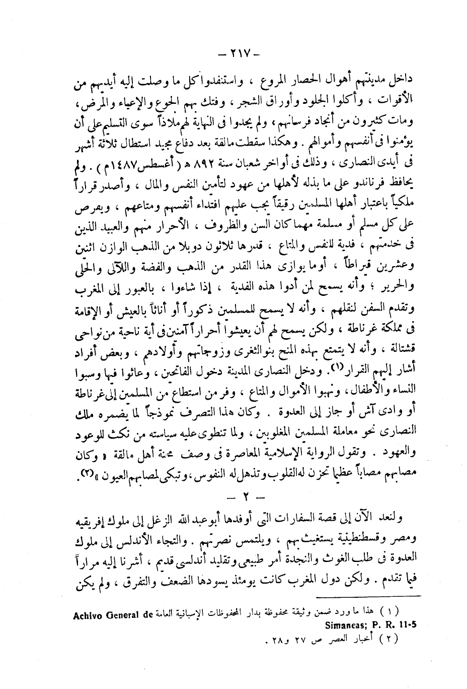 (¬1) هذا ما ورد ضمن وثيقة محفوظة بدار المحفوظات الإسبانية العامة Archivo General de Simancas; P. R. 11-5
