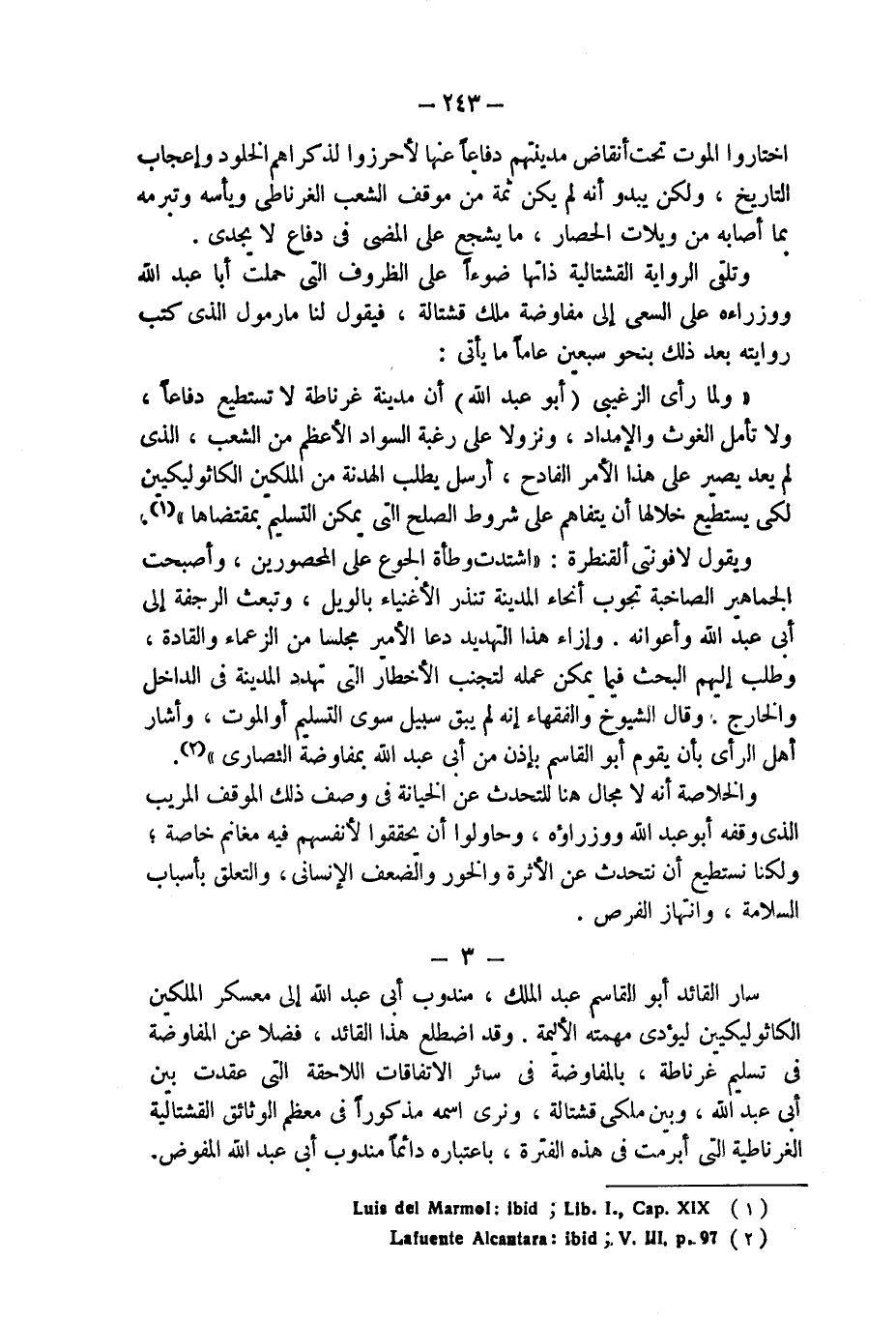 اختاروا الموت تحت أنقاض مدينتهم دفاعاً عنها، لأحرزوا لذكراهم الخلود وإعجاب التاريخ، ولكن يبدو أنه لم يكن ثمة من موقف الشعب الغرناطى ويأسه وتبرمه بما أصابه من ويلات الحصار، ما يشجع على المضى فى دفاع لا يجدى.