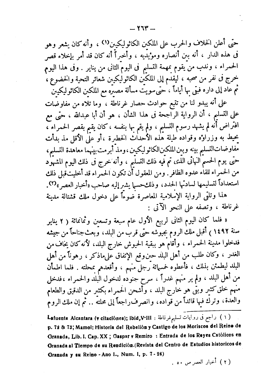 (¬1) راجع فى روايات تسليم غرناطة: Lafuente Alcantara (y citaciones) ; ibid, V. III