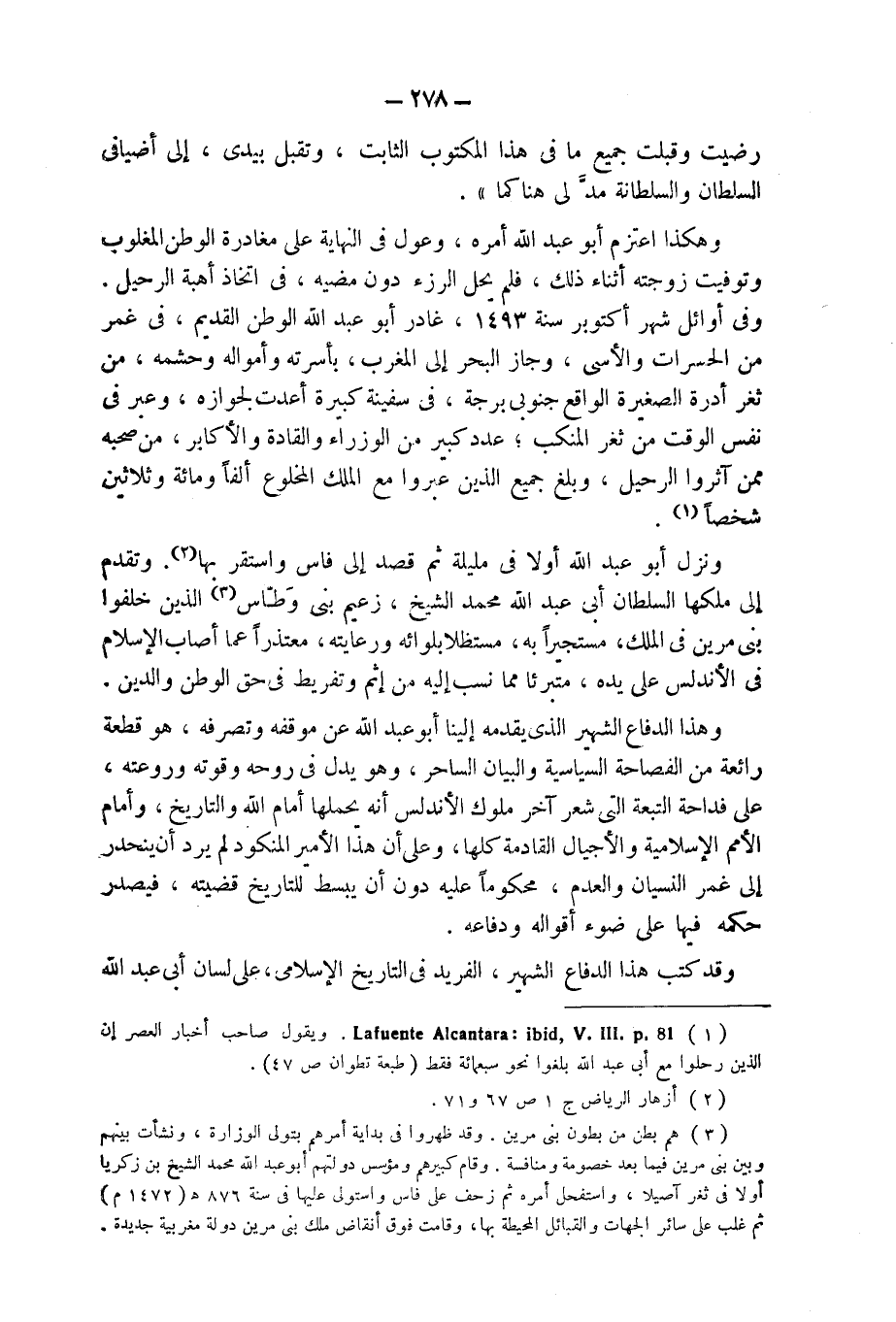 (¬1) Lafuente Alcantara: ibid, V. III. p. 81. ويقول صاحب أخبار العصر إن الذين رحلوا مع أبى عبد الله بلغوا نحو سبعمائة فقط (طبعة تطوان ص 47).