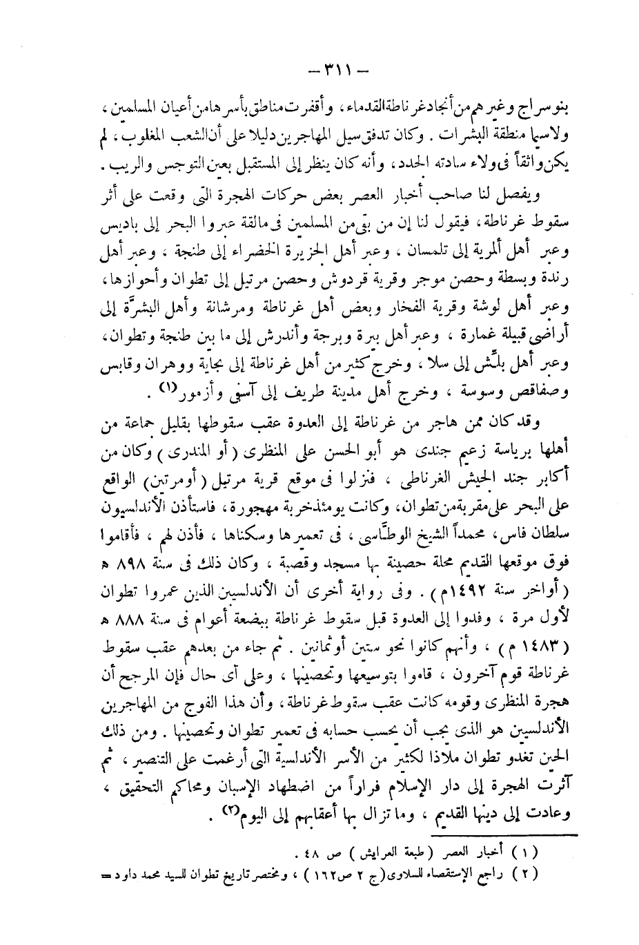 (¬2) راجع الإستقصاء للسلاوى (ج 2 ص 162)، ومختصر تاريخ تطوان للسيد محمد داود =