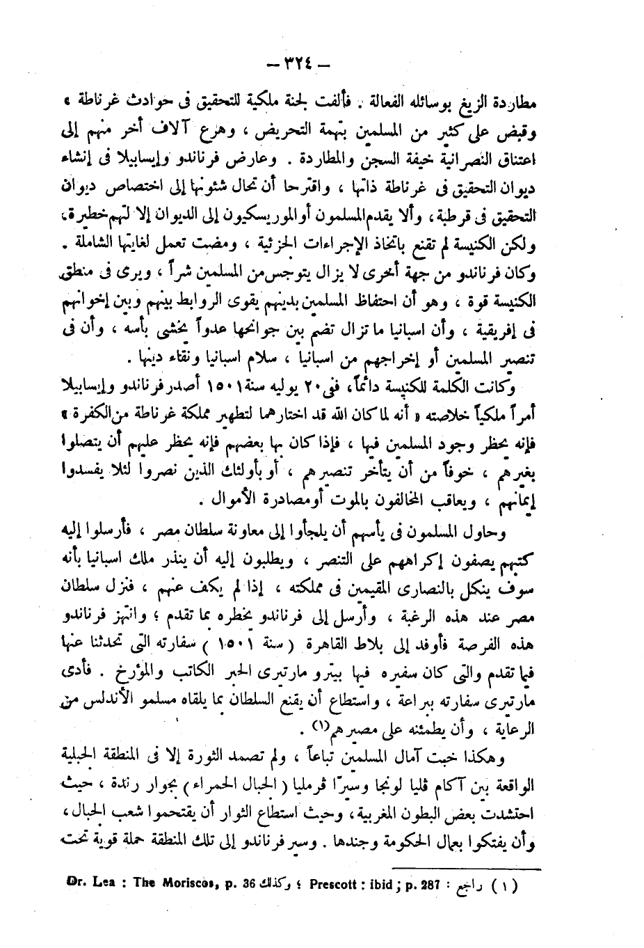 (¬1) راجع: Prescott: ibid ; p. 287؛ وكذلك Dr. Lea: The Moriscos, p. 36
