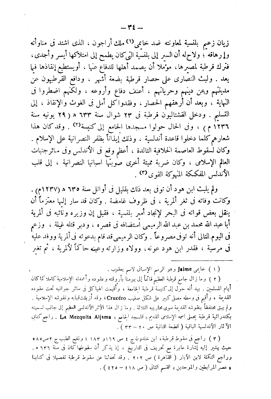 (¬3) راجع في سقوط قرطبة، ابن خلدون ج 4 ص 169 و 183؛ ونفح الطيب ج 2 ص 585 حيث يشير إليه إشارة عابرة مع تحريف في التاريخ، إذ يذكر أن سقوطها كان في سنة 636 هـ.