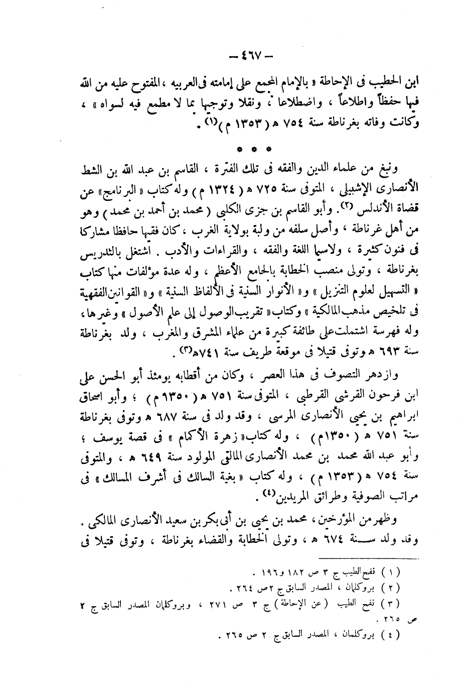 (¬3) نفح الطيب (عن الإحاطة) ج 3 ص 271، وبروكلمان المصدر السابق ج 2 ص 265.