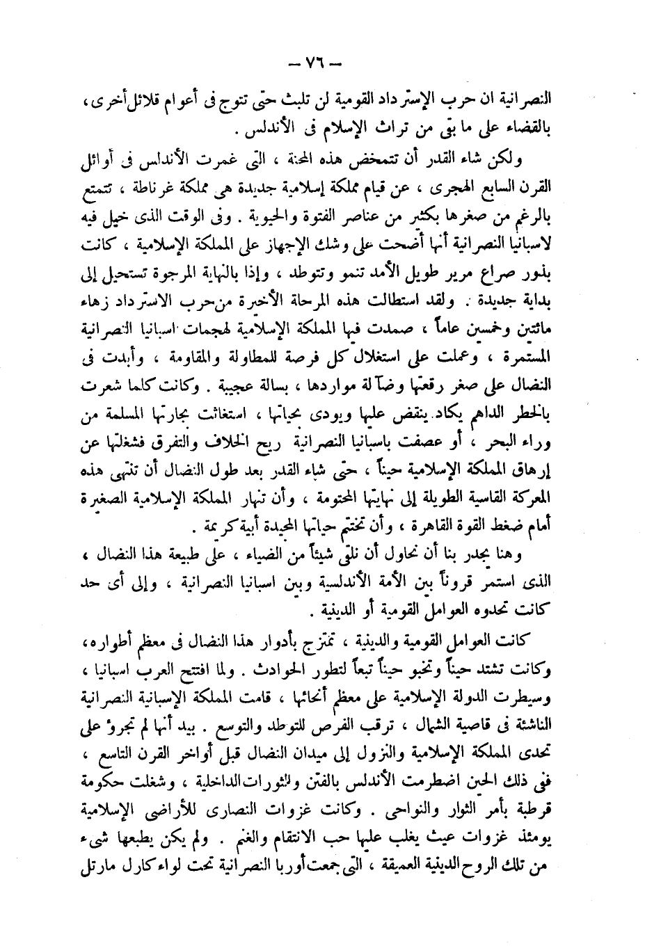 وهنا يجدر بنا أن نحاول أن نلقى شيئاً من الضياء، على طبيعة هذا النضال، الذى استمر قروناً بين الأمة الأندلسية وبين اسبانيا النصرانية , وإلى أى حد كانت تحدوه العوامل القومية أو الدينية.