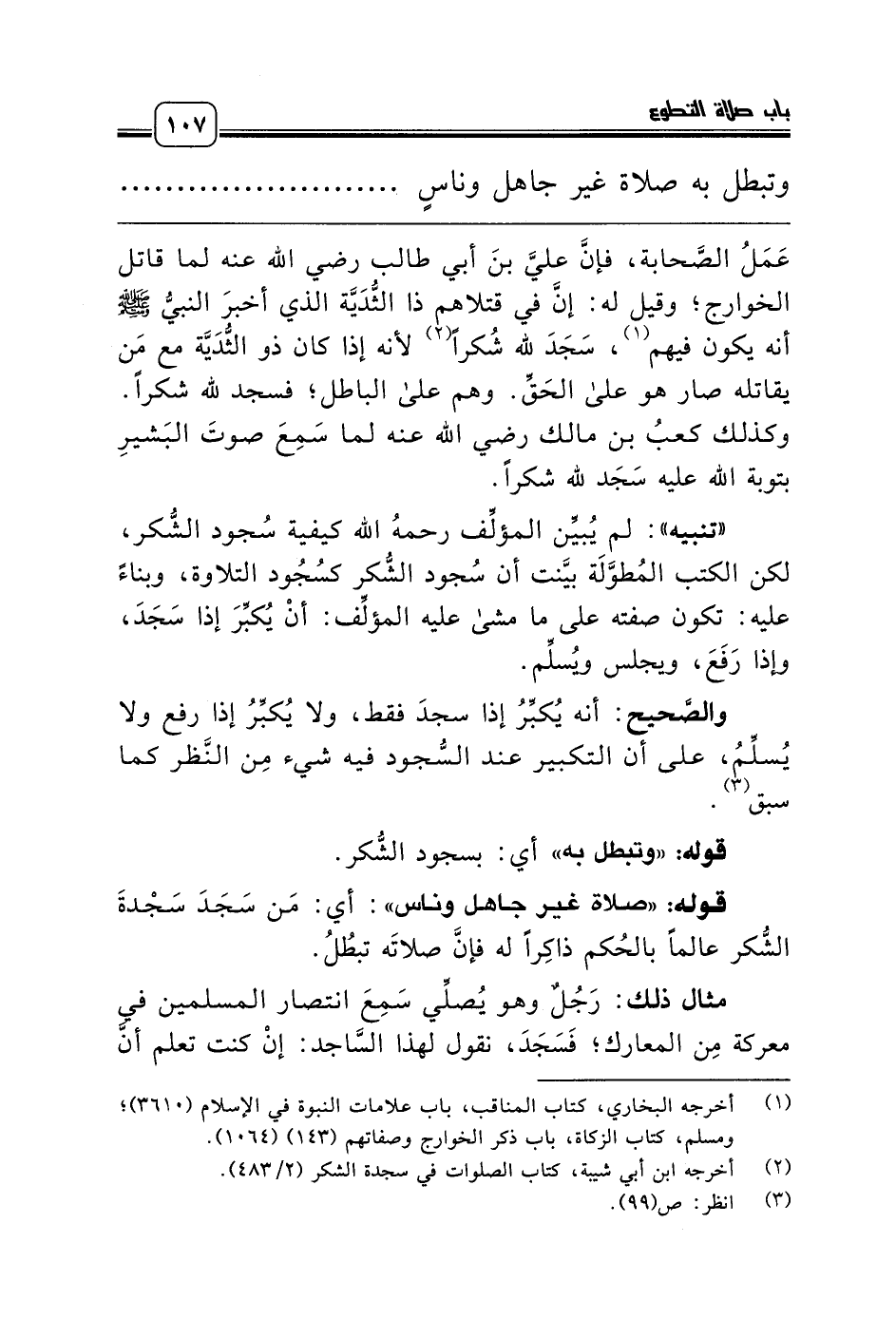 مثال ذلك: رَجُلٌ وهو يُصلِّي سَمِعَ انتصار المسلمين في معركة مِن المعارك؛ فَسَجَدَ، نقول لهذا السَّاجد: إنْ كنت تعلم أنَّ