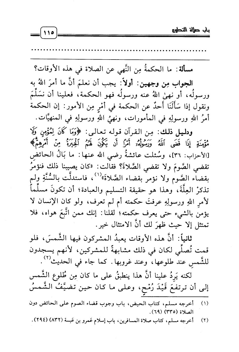 مسألة: ما الحكمةُ مِن النَّهي عن الصلاة في هذه الأوقات؟