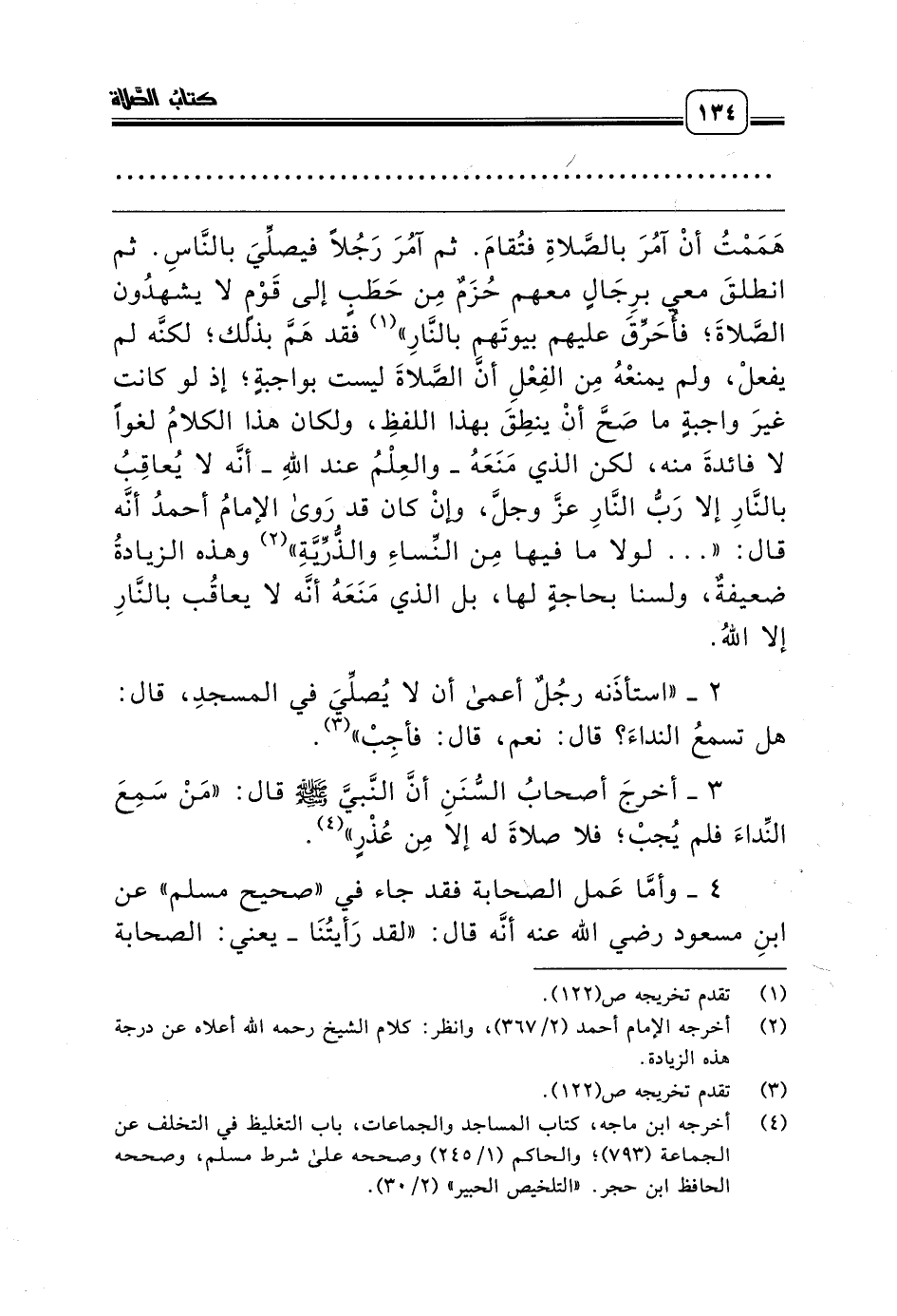 (¬4) أخرجه ابن ماجه، كتاب المساجد والجماعات، باب التغليظ في التخلف عن الجماعة (793)؛ والحاكم (1/ 245) وصححه على شرط مسلم، وصححه الحافظ ابن حجر. «التلخيص الحبير» (2/ 30).
