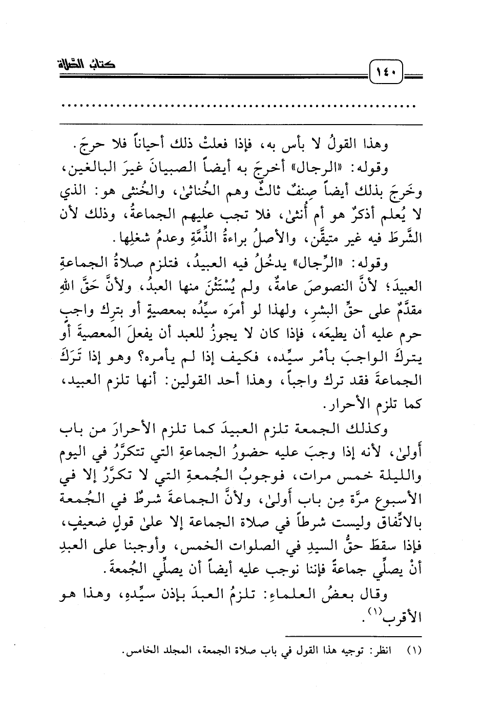 (¬1) انظر: توجيه هذا القول في باب صلاة الجمعة، المجلد الخامس.