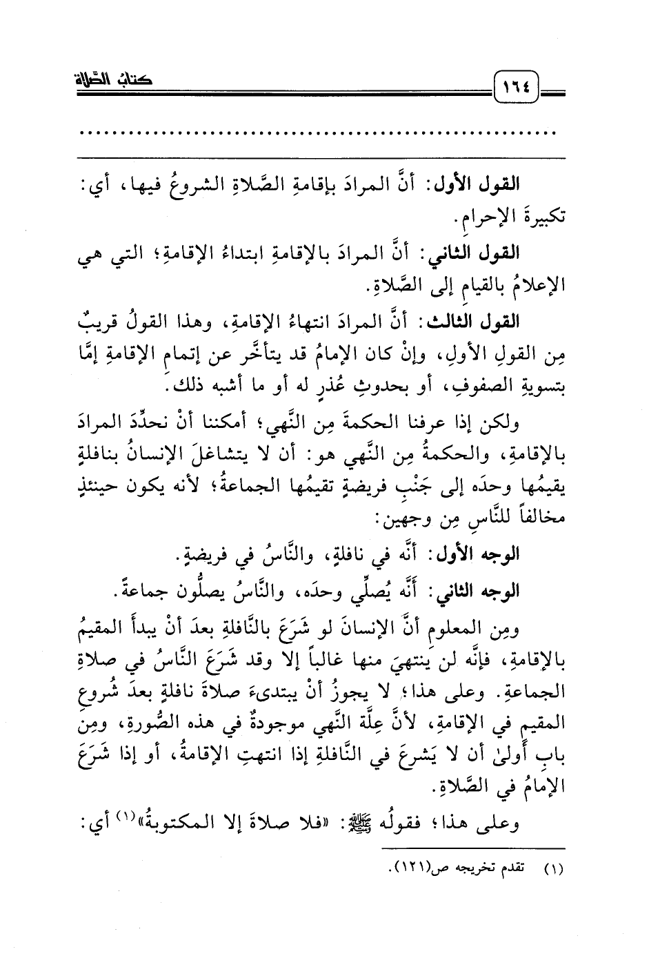 الوجه الأول: أنَّه في نافلةٍ، والنَّاسُ في فريضةٍ.