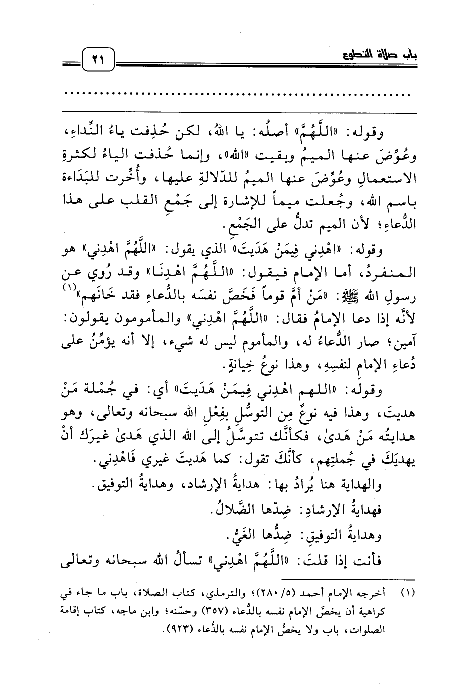 (¬1) أخرجه الإمام أحمد (5/ 280)؛ والترمذي، كتاب الصلاة، باب ما جاء في كراهية أن يخصَّ الإمام نفسه بالدُّعاء (357) وحسّنه؛ وابن ماجه، كتاب إقامة الصلوات، باب ولا يخصُّ الإمام نفسه بالدُّعاء (923).