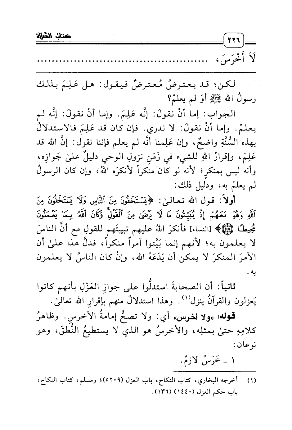 (¬1) أخرجه البخاري، كتاب النكاح، باب العزل (5209)؛ ومسلم، كتاب النكاح، باب حكم العزل (1440) (136).
