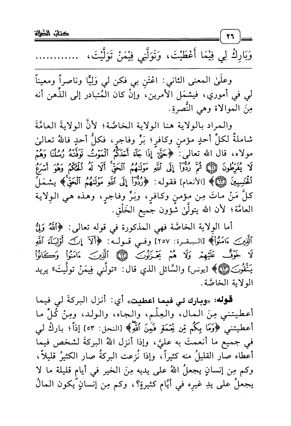 وَبَارِكْ لِي فِيْمَا أَعْطَيْتَ، وَتَوَلَّنِي فِيْمَنْ تَوَلَّيْتَ، .............