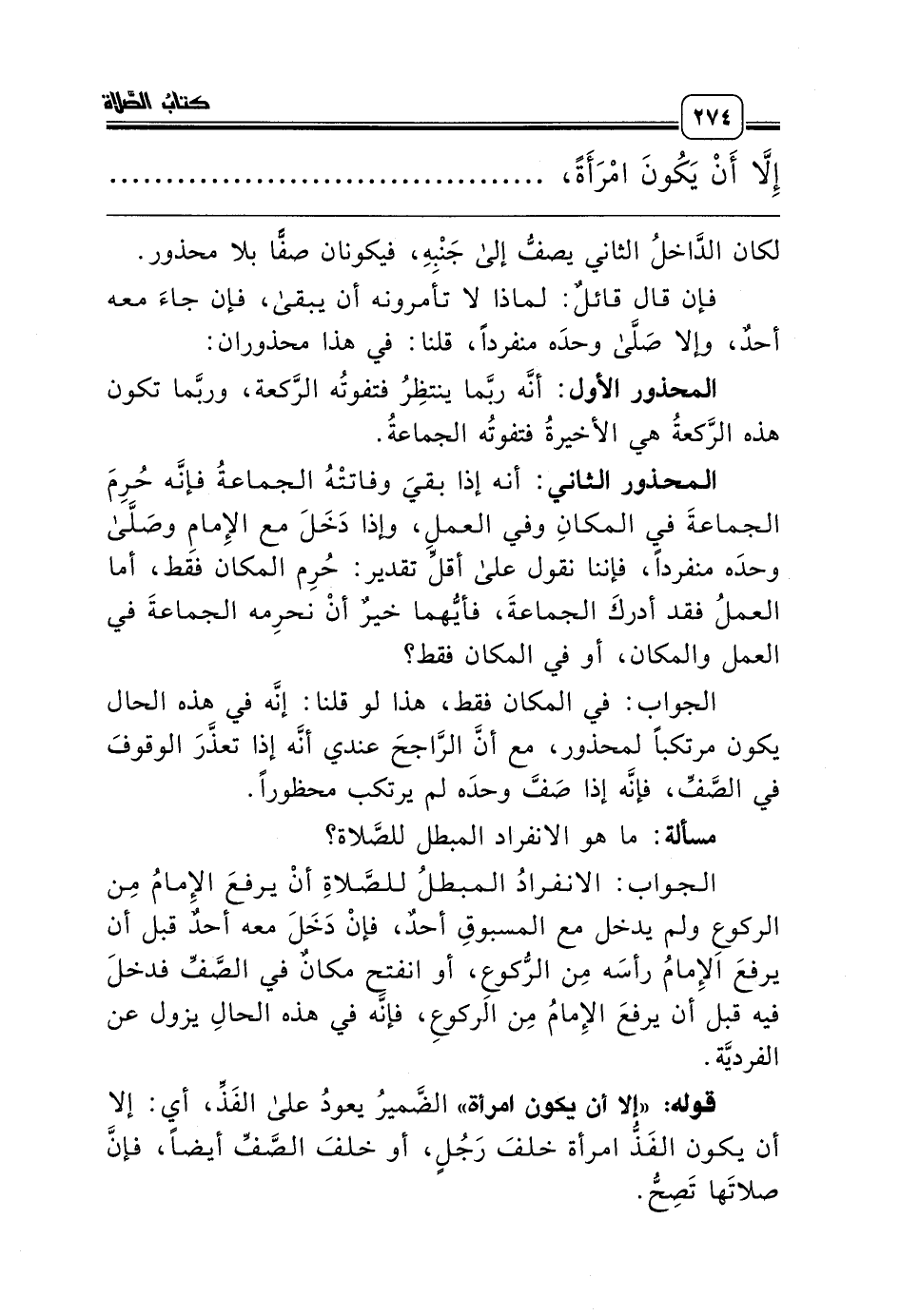 مسألة: ما هو الانفراد المبطل للصَّلاة؟