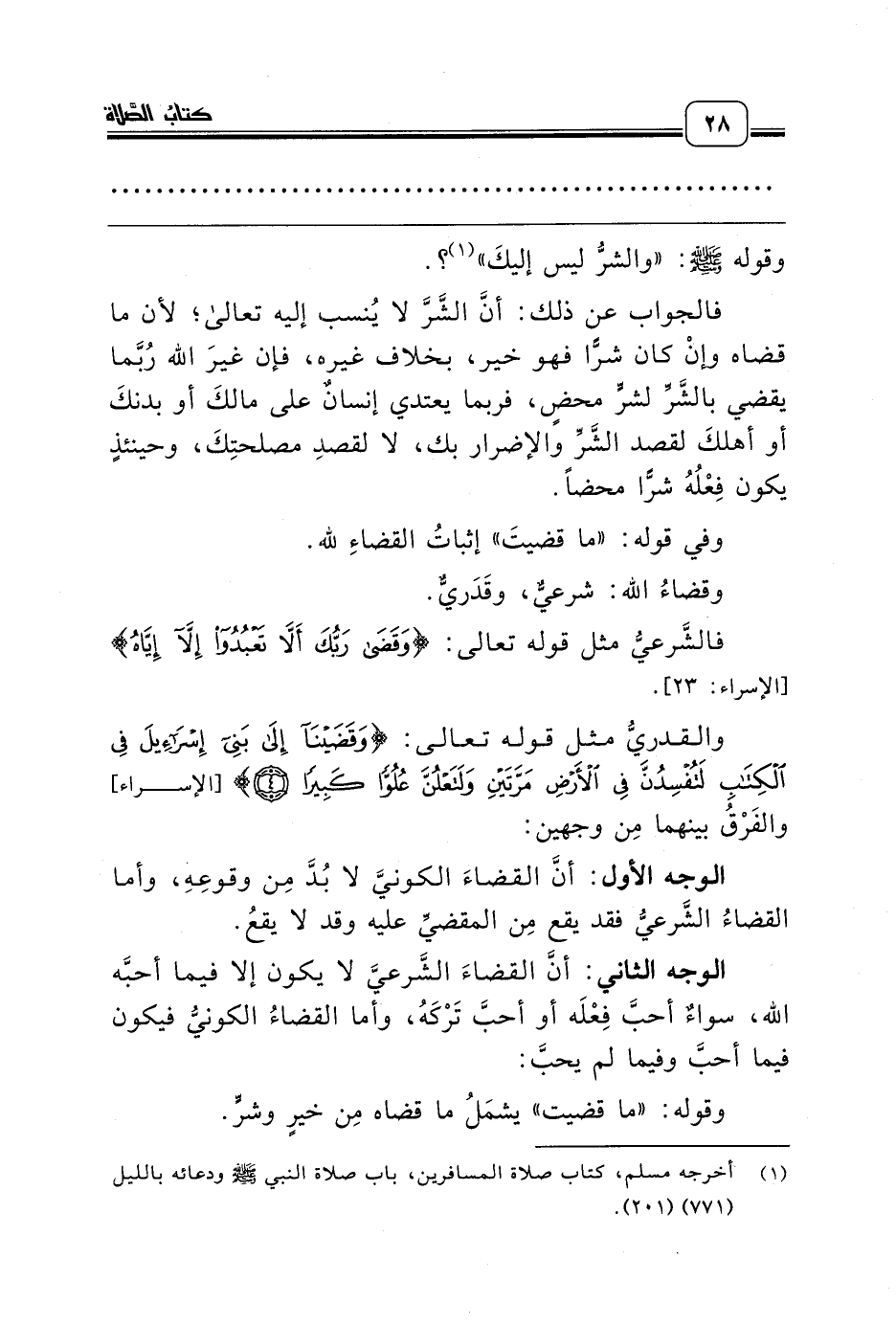 وقوله صلّى الله عليه وسلّم: «والشرُّ ليس إليكَ» (¬1)؟.