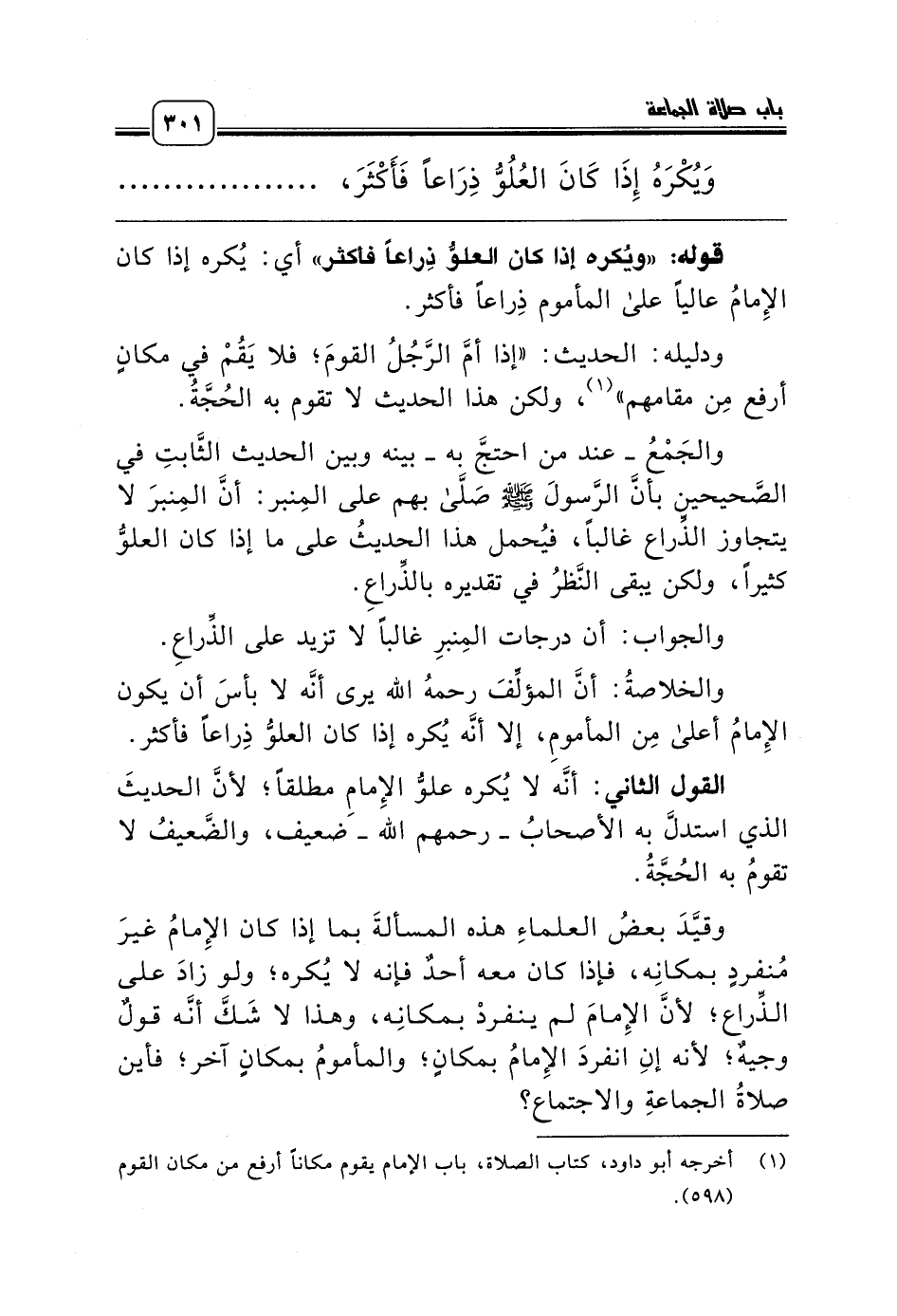 (¬1) أخرجه أبو داود، كتاب الصلاة، باب الإمام يقوم مكاناً أرفع من مكان القوم (598).