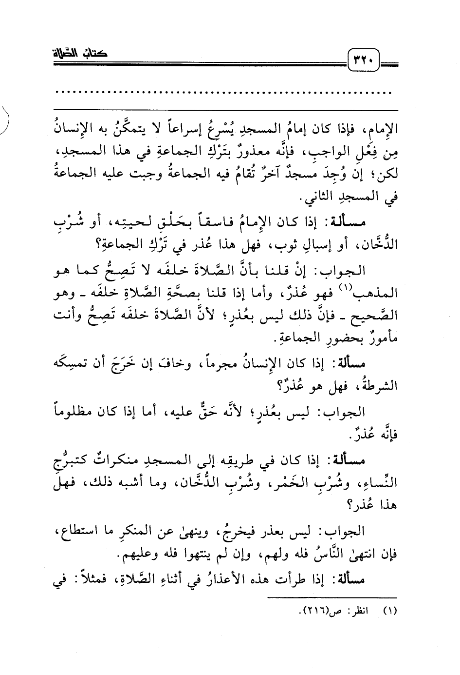 الجواب: إنْ قلنا بأنَّ الصَّلاةَ خلفَه لا تَصِحُّ كما هو المذهب (¬1) فهو عُذرٌ، وأما إذا قلنا بصحَّةِ الصَّلاةِ خلفَه ـ وهو الصَّحيح ـ فإنَّ ذلك ليس بعُذرٍ؛ لأنَّ الصَّلاةَ خلفَه تَصِحُّ وأنت مأمورٌ بحضورِ الجماعةِ.