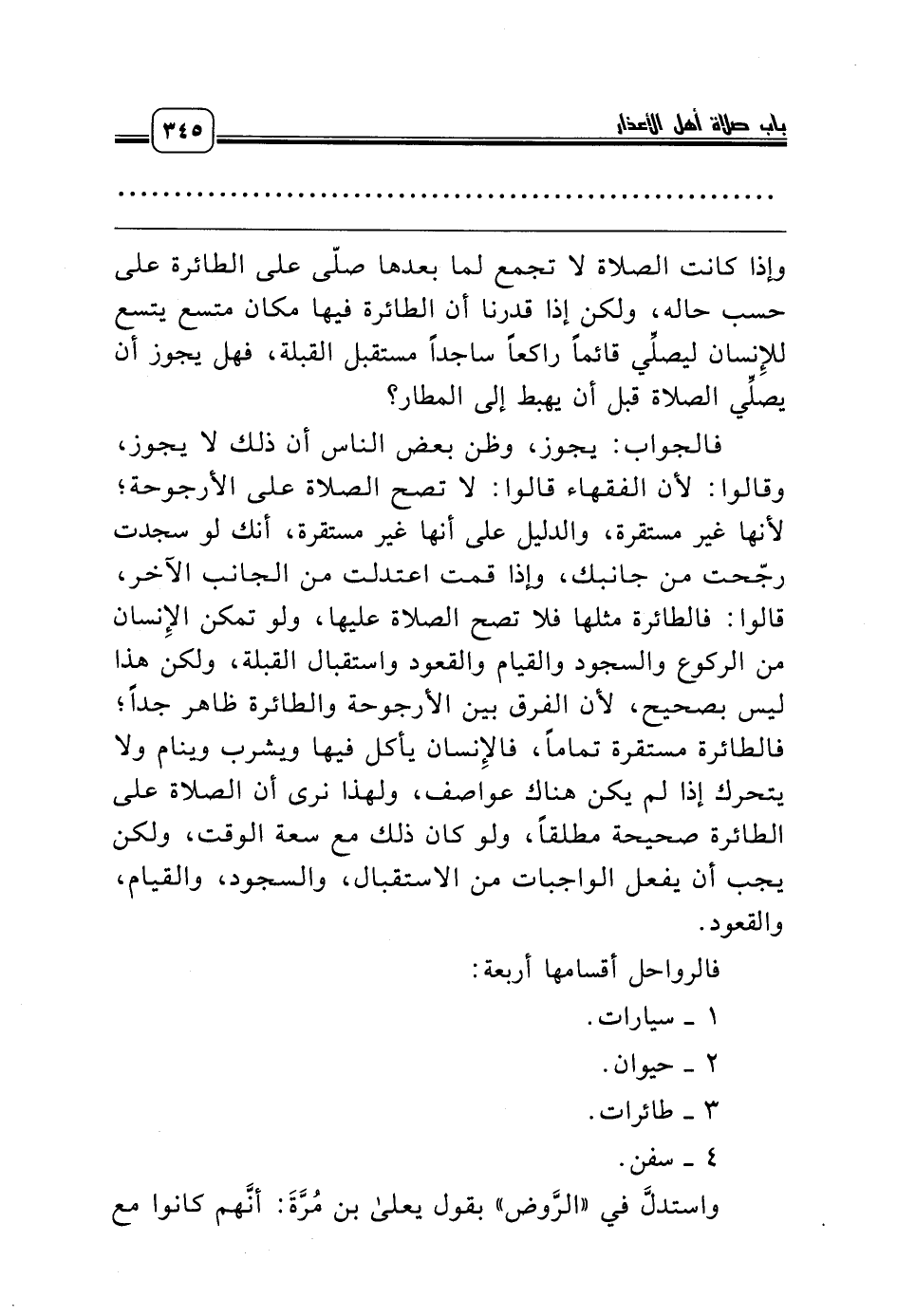 وإذا كانت الصلاة لا تجمع لما بعدها صلّى على الطائرة على حسب حاله، ولكن إذا قدرنا أن الطائرة فيها مكان متسع يتسع للإِنسان ليصلِّي قائماً راكعاً ساجداً مستقبل القبلة، فهل يجوز أن يصلِّي الصلاة قبل أن يهبط إلى المطار؟
