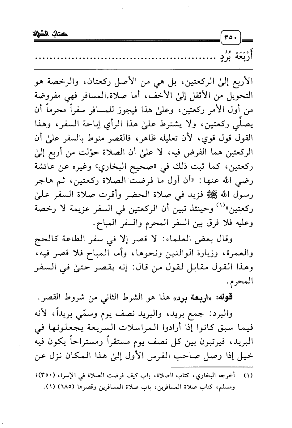 قوله: «أربعة برد» هذا هو الشرط الثاني من شروط القصر.