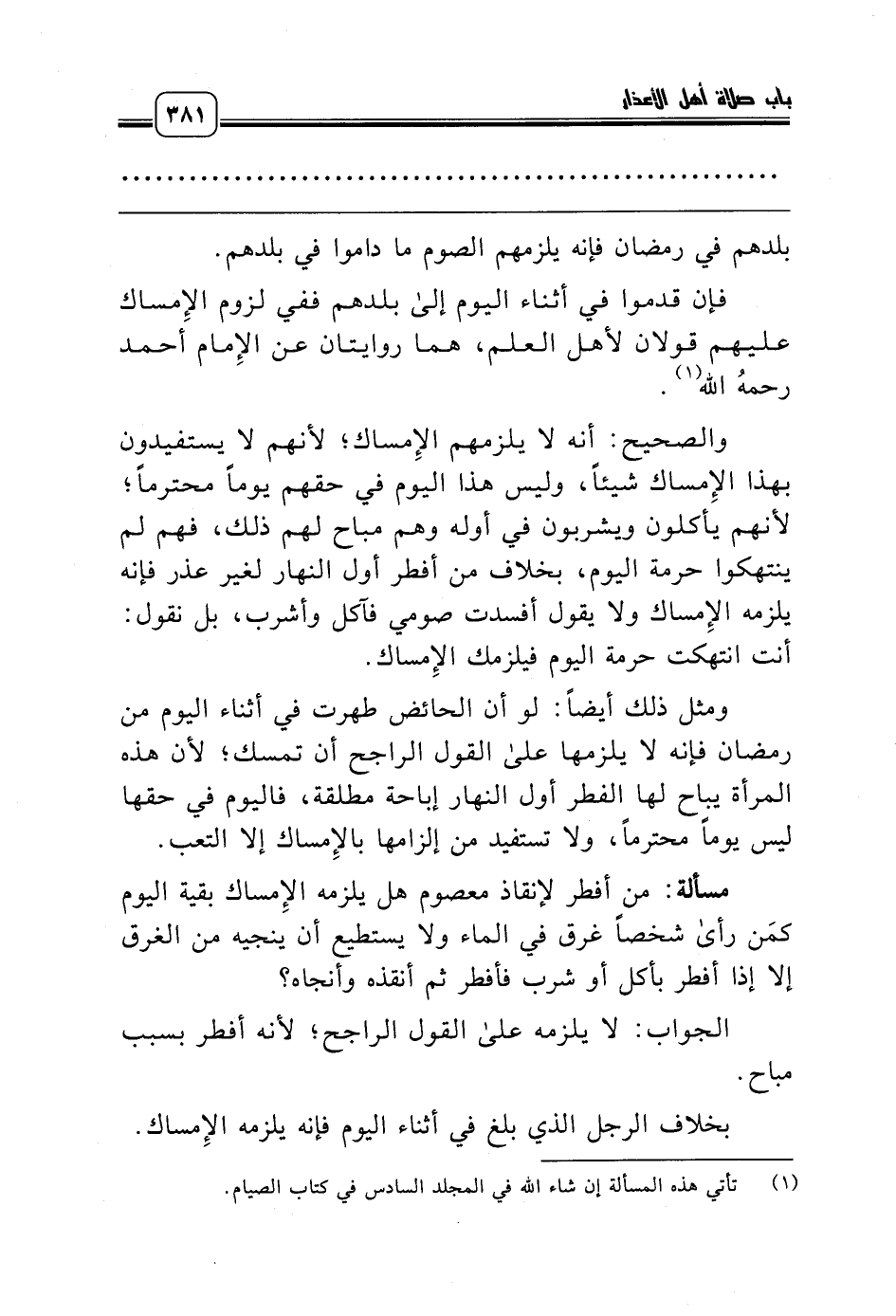 (¬1) تأتي هذه المسألة إن شاء الله في المجلد السادس في كتاب الصيام.