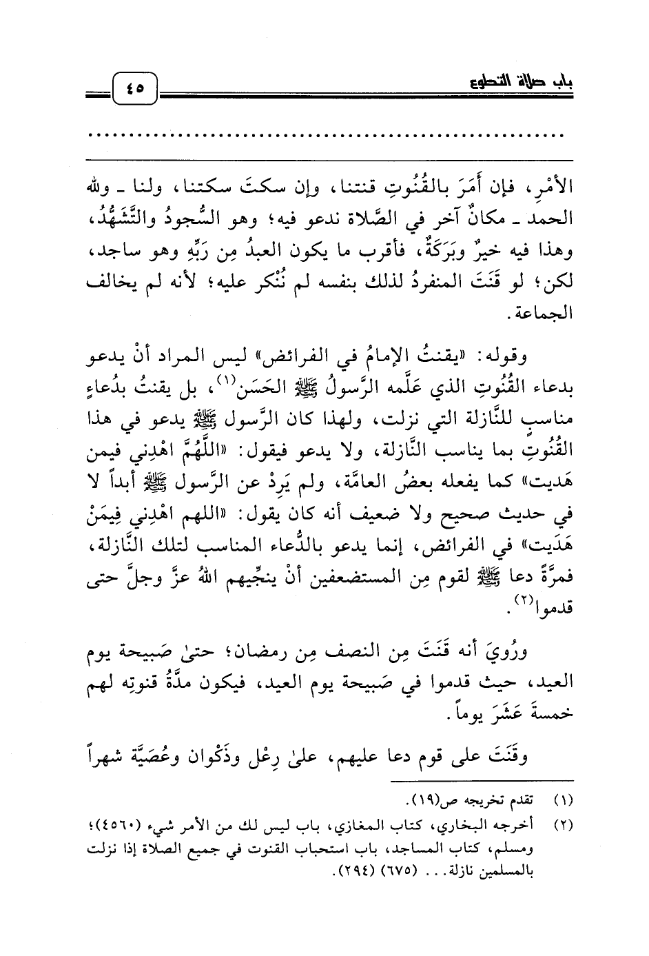 (¬2) أخرجه البخاري، كتاب المغازي، باب ليس لك من الأمر شيء (4560)؛ ومسلم، كتاب المساجد، باب استحباب القنوت في جميع الصلاة إذا نزلت بالمسلمين نازلة ... (675) (294).