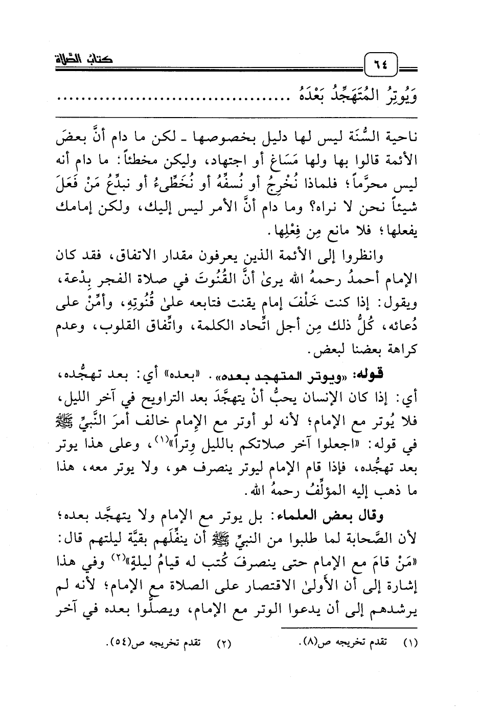وَيُوتِرُ المُتَهَجِّدُ بَعْدَهُ فَإِنْ تَبعَ إِمَامَهُ شَفَعَهُ بِرَكْعَةٍ .........