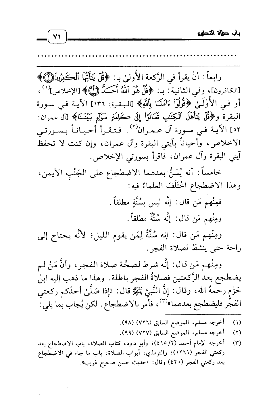 (¬3) أخرجه الإمام أحمد (2/ 415)؛ وأبو داود، كتاب الصلاة، باب الاضطجاع بعد ركعتي الفجر (1261)؛ والترمذي، أبواب الصلاة، باب ما جاء في الاضطجاع بعد ركعتي الفجر (420) وقال: «حديث حسن صحيح غريب».