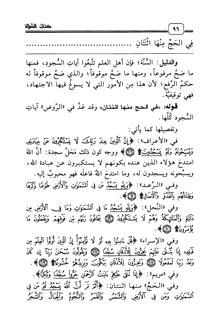 قوله: «في الحج منها اثنتان» وقد عَدَّ في «الرَّوض» آياتِ السُّجود كُلَّها.