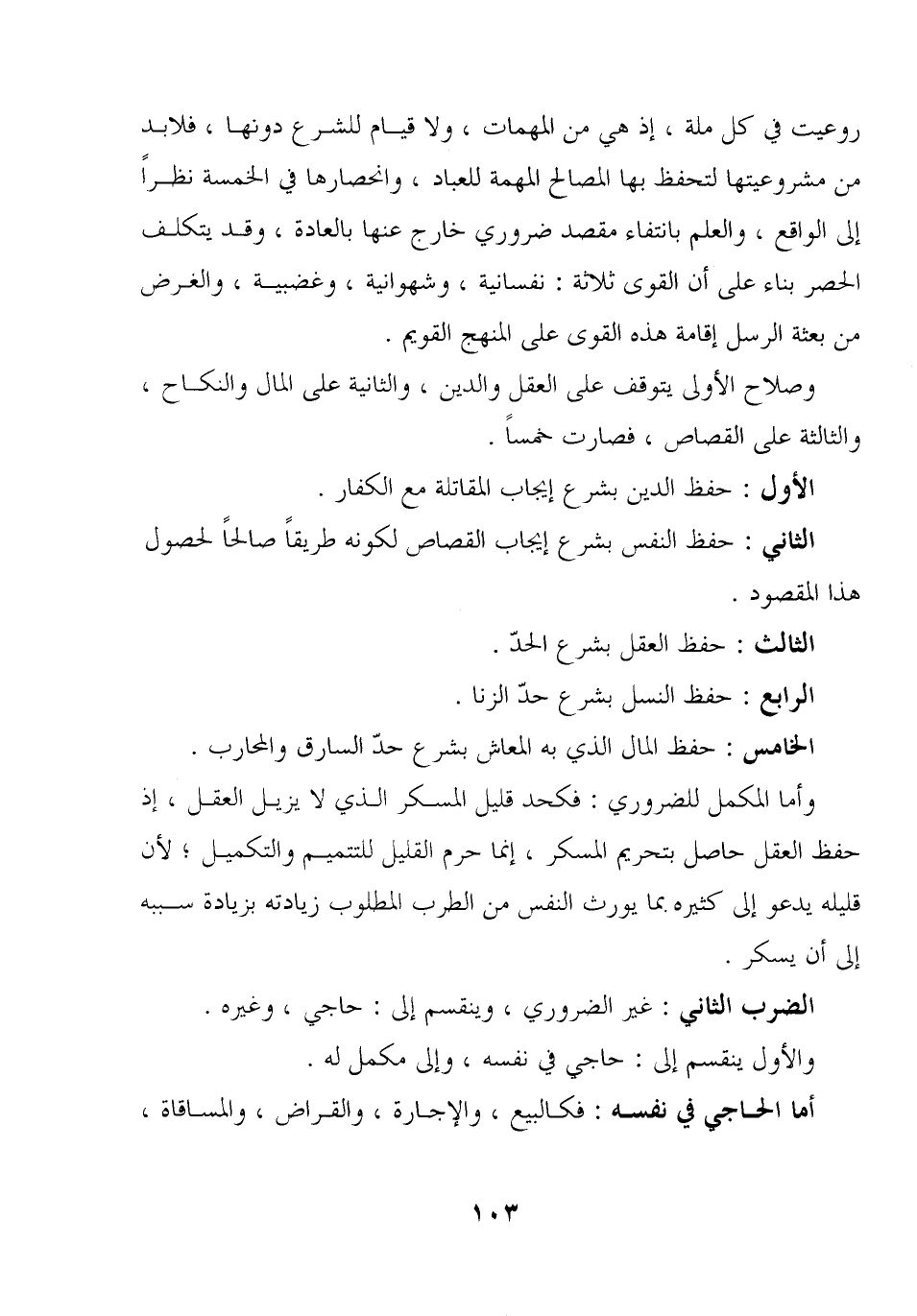 روعيت في كل ملة، إذ هي من المهمات، ولا قيام للشرع دونها، فلابد من مشروعيتها لتحفظ بها المصالح المهمة للعباد، وانحصارها في الخمسة نظرا إلى الواقع، والعلم بانتفاء مقصد ضروري خارج عنها بالعادة، وقد يتكلف الحصر بناء على أن القوى ثلاثة: نفسانية، وشهوانية، وغضبية، والغرض من بعثة الرسل إقامة هذه القوى على المنهج القويم.