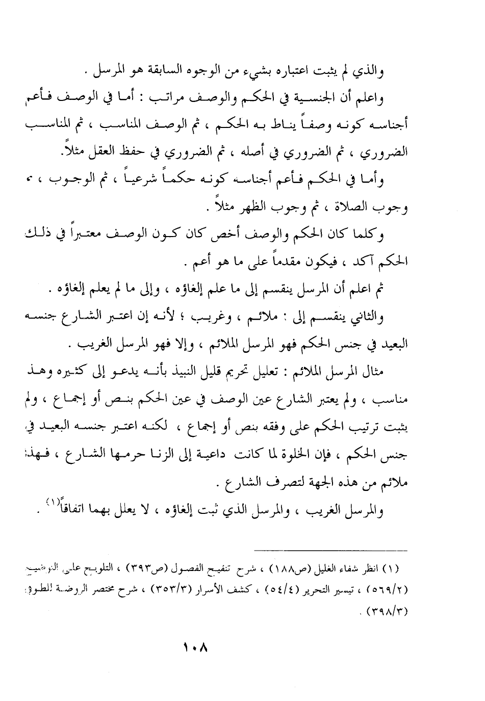 واعلم أن الجنسية في الحكم والوصف مراتب: أما في الوصف فأعم أجناسه كونه وصفا يناط به الحكم، ثم الوصف المناسب، ثم المناسب الضروري، ثم الضروري في أصله، ثم الضروري في حفظ العقل مثلا.