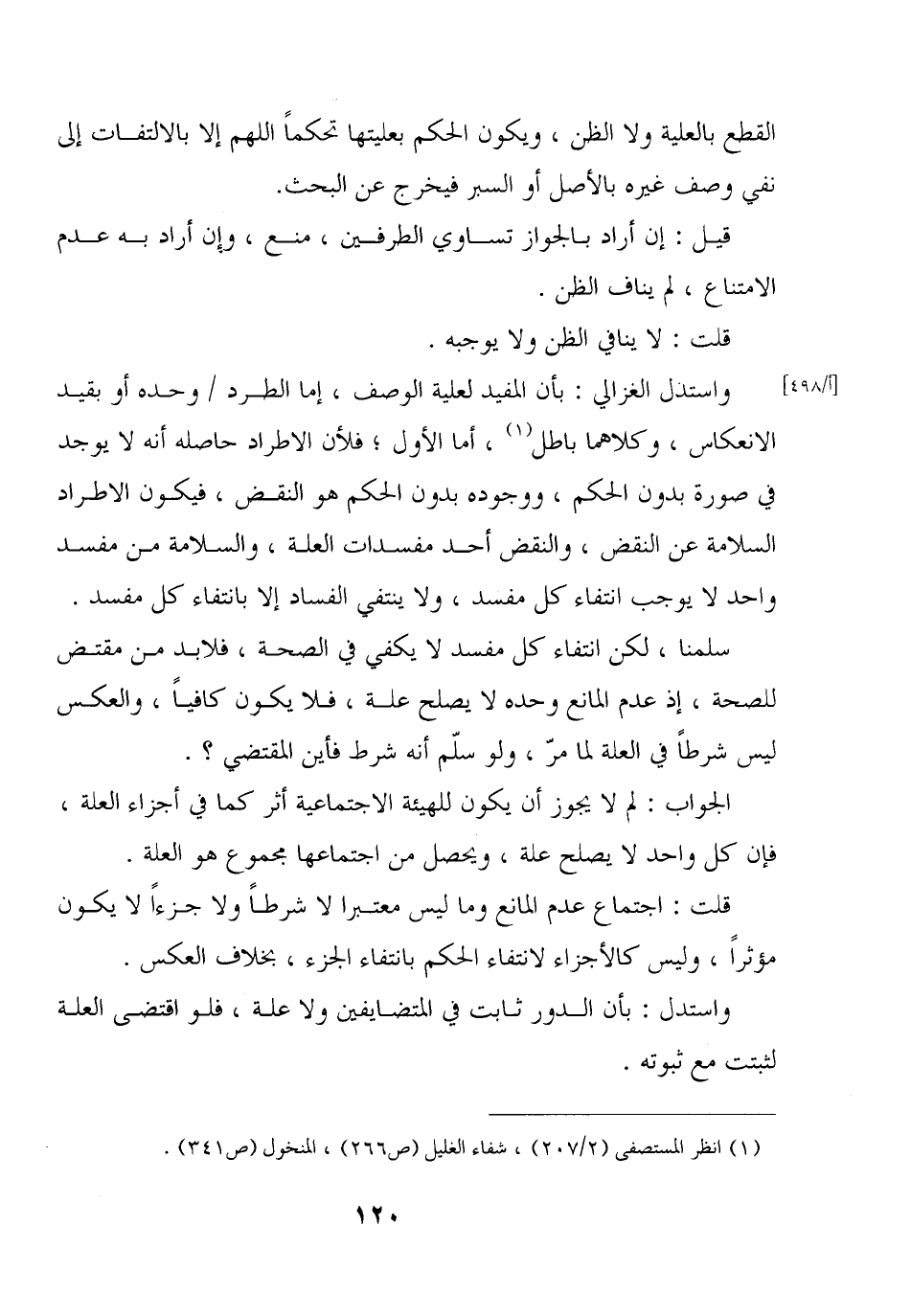 واستدل الغزالي: بأن المفيد لعلية الوصف، إما الطرد/ وحده أو بقيد الانعكاس، وكلاهما باطل، أما الأول؛ فلأن الاطراد حاصله أنه لا يوجد في صورة بدون الحكم، ووجوده بدون الحكم هو النقض، فيكون الاطراد السلامة عن النقض، والنقض أحد مفسدات العلة، والسلامة من مفسد واحد لا يوجب انتفاء كل مفسد، ولا ينتفي الفساد إلا بانتفاء كل مفسد.