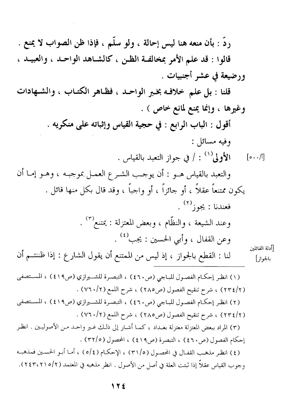 أقول: الباب الرابع: في حجية القياس وإثباته على منكريه.