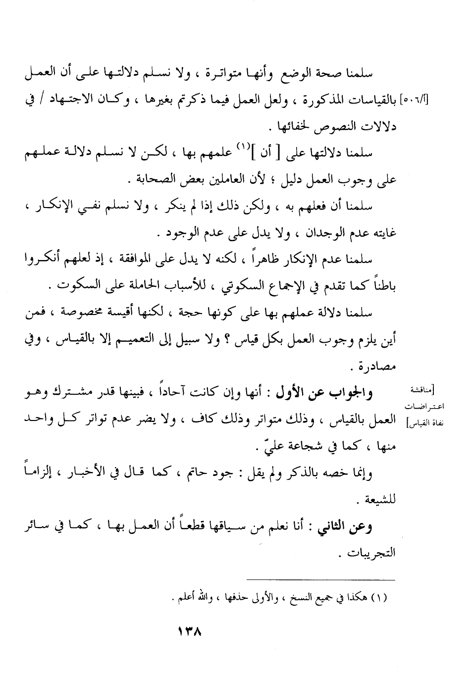 سلمنا دلالة عملهم بها على كونها حجة، لكنها أقيسة مخصوصة، فمن أين يلزم وجوب العمل بكل قياس؟ ولا سبيل إلى التعميم إلا بالقياس، وفي مصادرة.