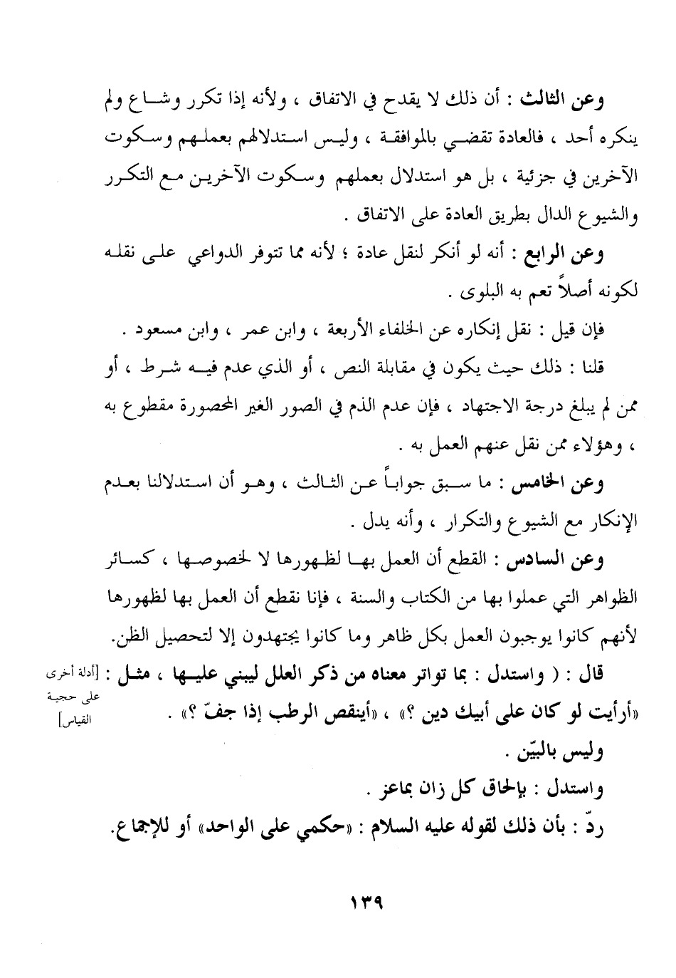 وعن الخامس: ما سبق جوابا عن الثالث، وهو أن استدلالنا بعدم الإنكار مع الشيوع والتكرار، وأنه يدل.