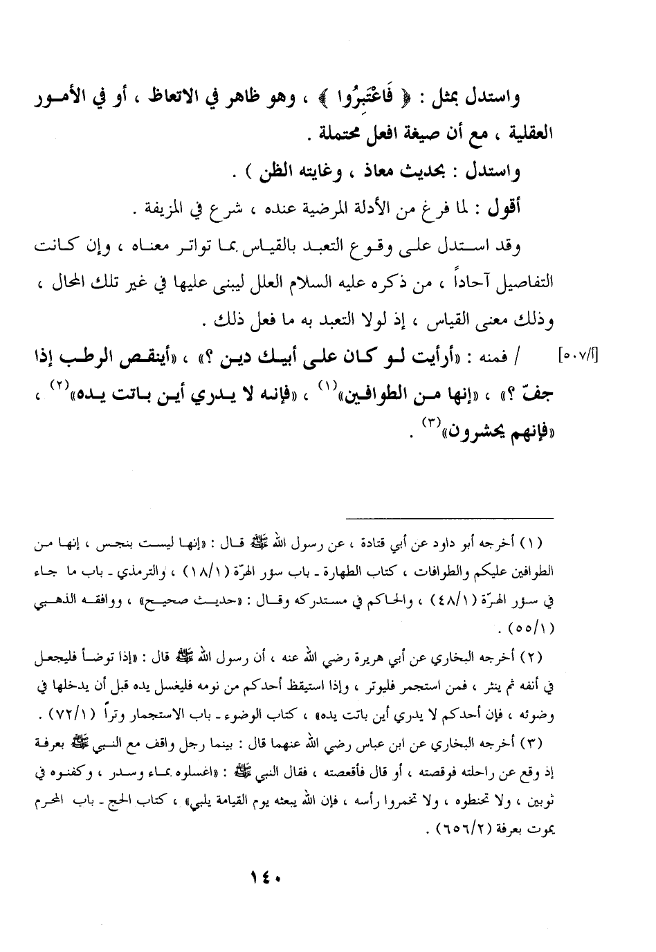 /فمنه: "أرأيت لو كان على أبيك دين؟ "، "أينقص الرطب إذا جف؟ "، "إنها من الطوافين"، "فإنه لا يدري أين باتت يده"، "فإنهم يحشرون".