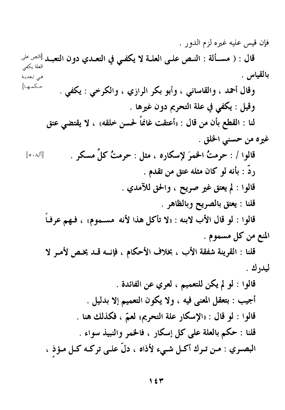 قالوا/: حرمت الخمر لإسكاره، مثل: حرمت كل مسكر.
