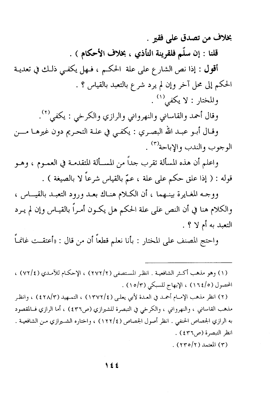 وقال أبو عبد الله البصري: يكفي في علة التحريم دون غيرها من الوجوب والندب والإباحة.