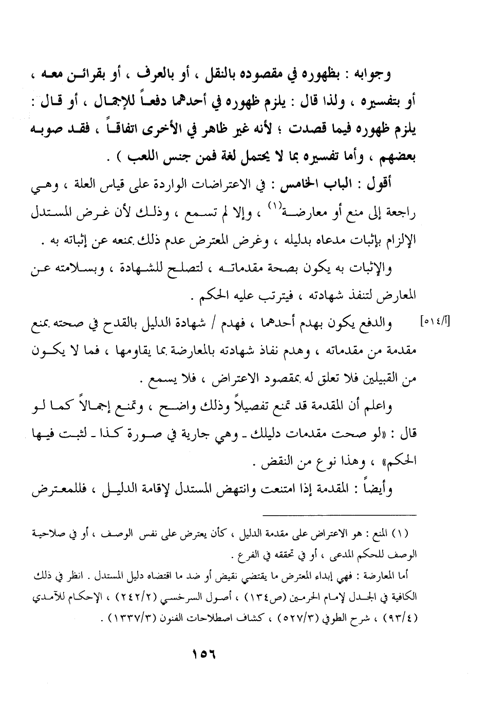 أقول: الباب الخامس: في الاعتراضات الواردة على قياس العلة، وهي راجعة إلى منع أو معارضة، وإلا لم تسمع، وذلك لأن غرض المستدل الإلزام بإثبات مدعاه بدليله، وغرض المعترض عدم ذلك بمنعه عن إثباته به.