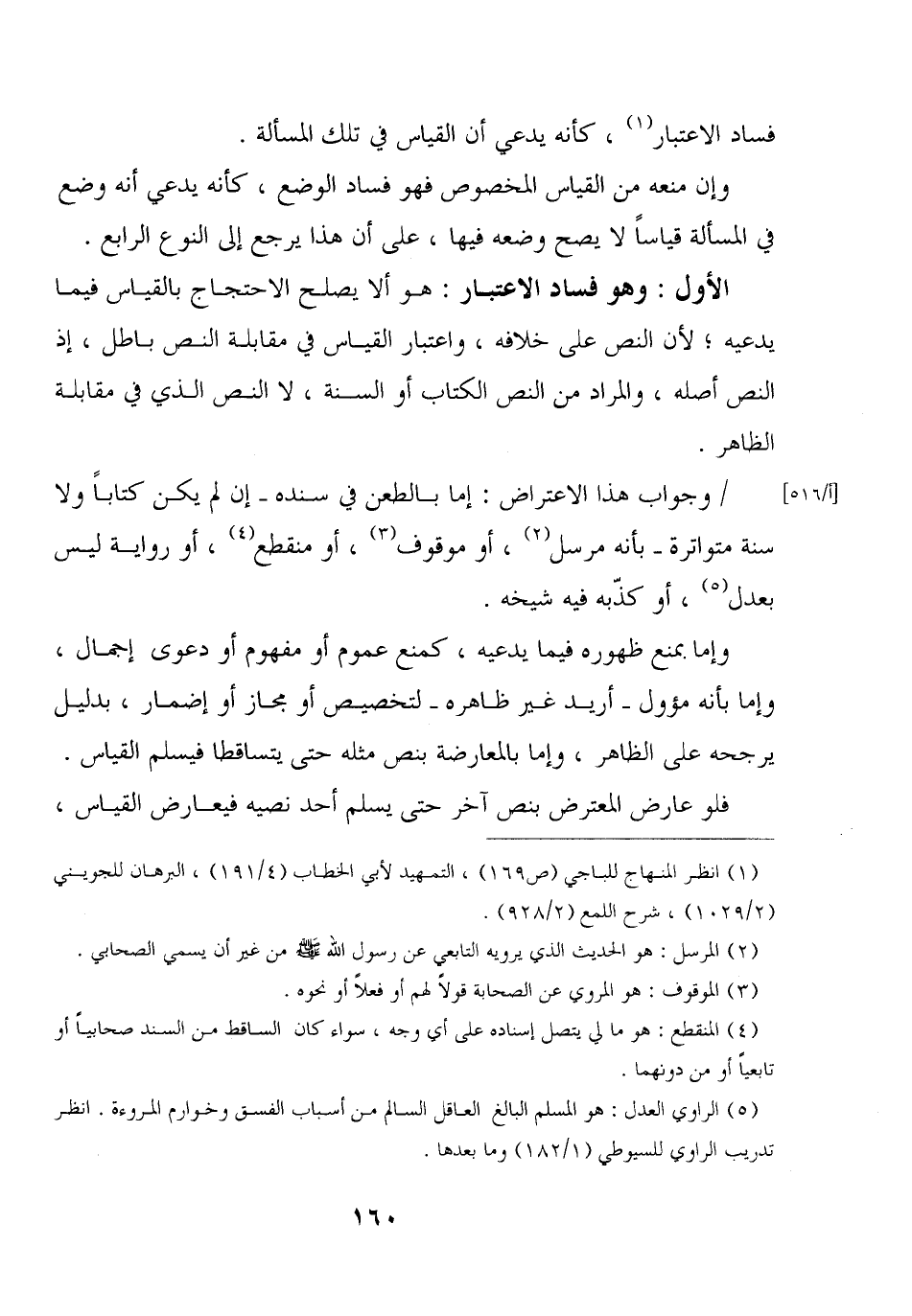 الأول: وهو فساد الاعتبار: هو ألا يصلح الاحتجاج بالقياس فيما يدعيه؛ لأن النص على خلافه، واعتبار القياس في مقابلة النص باطل، إذ النص أصله، والمراد من النص الكتاب أو السنة، لا النص الذي في مقابلة الظاهر.