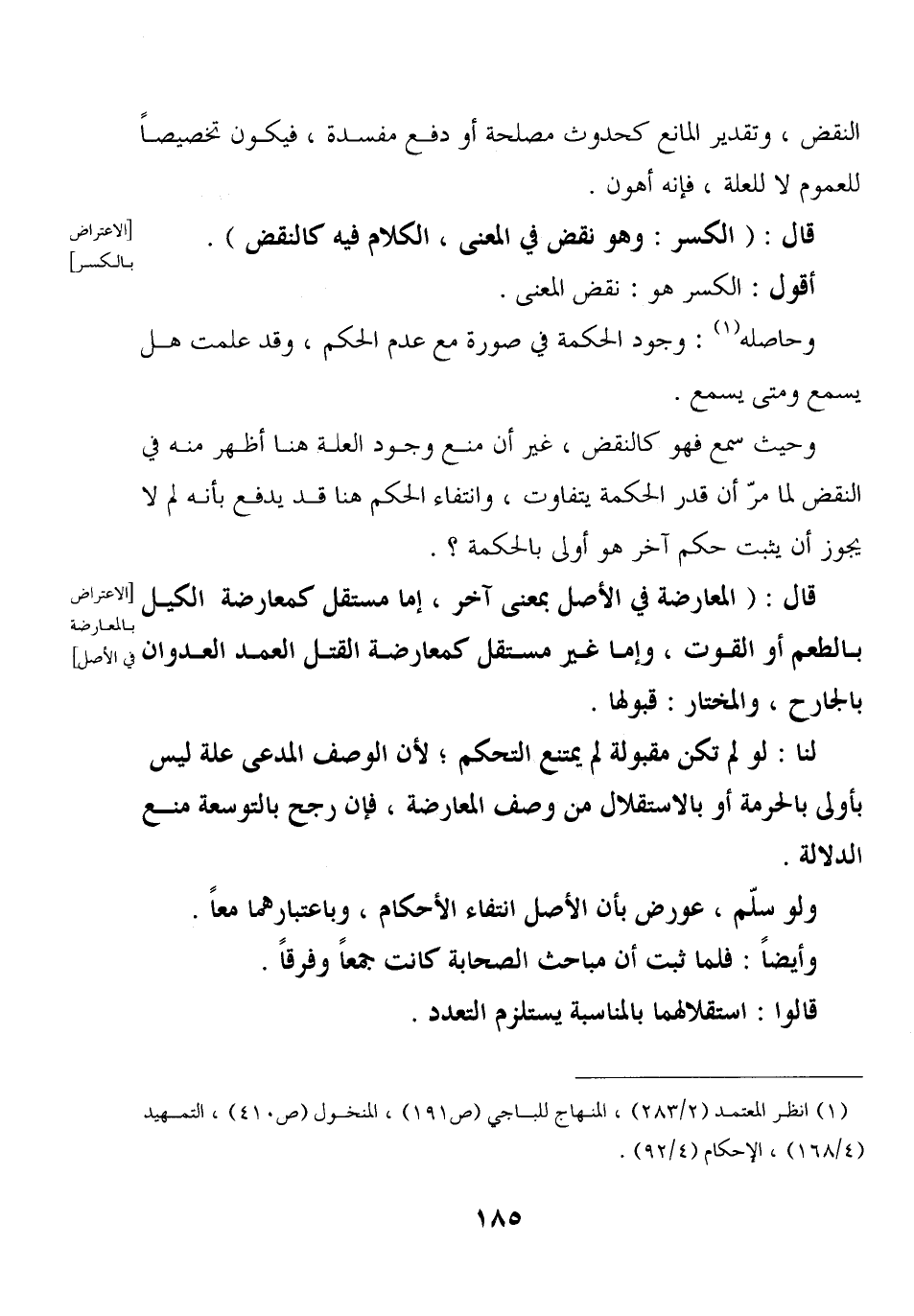 قال: (الكسر: وهو نقض في المعنى، الكلام فيه كالنقض).