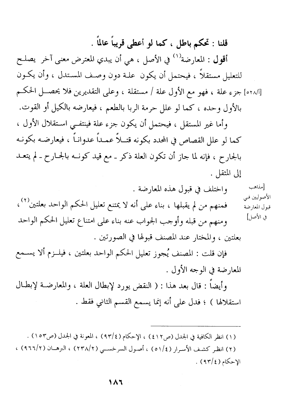 وأيضا: قال بعد هذا: (النقض يورد لإبطال العلة، والمعارضة لإبطال استقلالها)؛ فدل على أنه إنما يسمع القسم الثاني فقط.