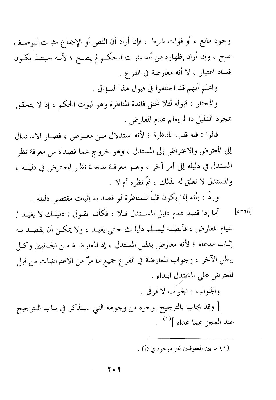 وجود مانع، أو فوات شرط، فإن أراد أن النص أو الإجماع مثبت للوصف صح، وإن أراد إظهاره من أنه مثبت للحكم لم يصح؛ لأنه حينئذ يكون فساد اعتبار، لا أنه معارضة في الفرع.