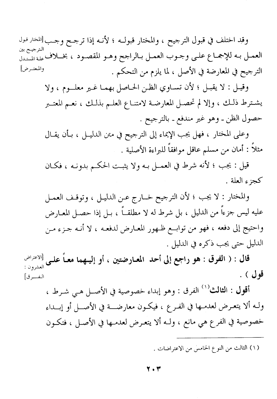أقول: الثالث الفرق: وهو إبداء خصوصية في الأصل هي شرط، وله ألا يتعرض لعدمها في الفرع، فيكون معارضة في الأصل أو إبداء خصوصية في الفرع هي مانع، وله ألا يتعرض لعدمها في الأصل، فتكون