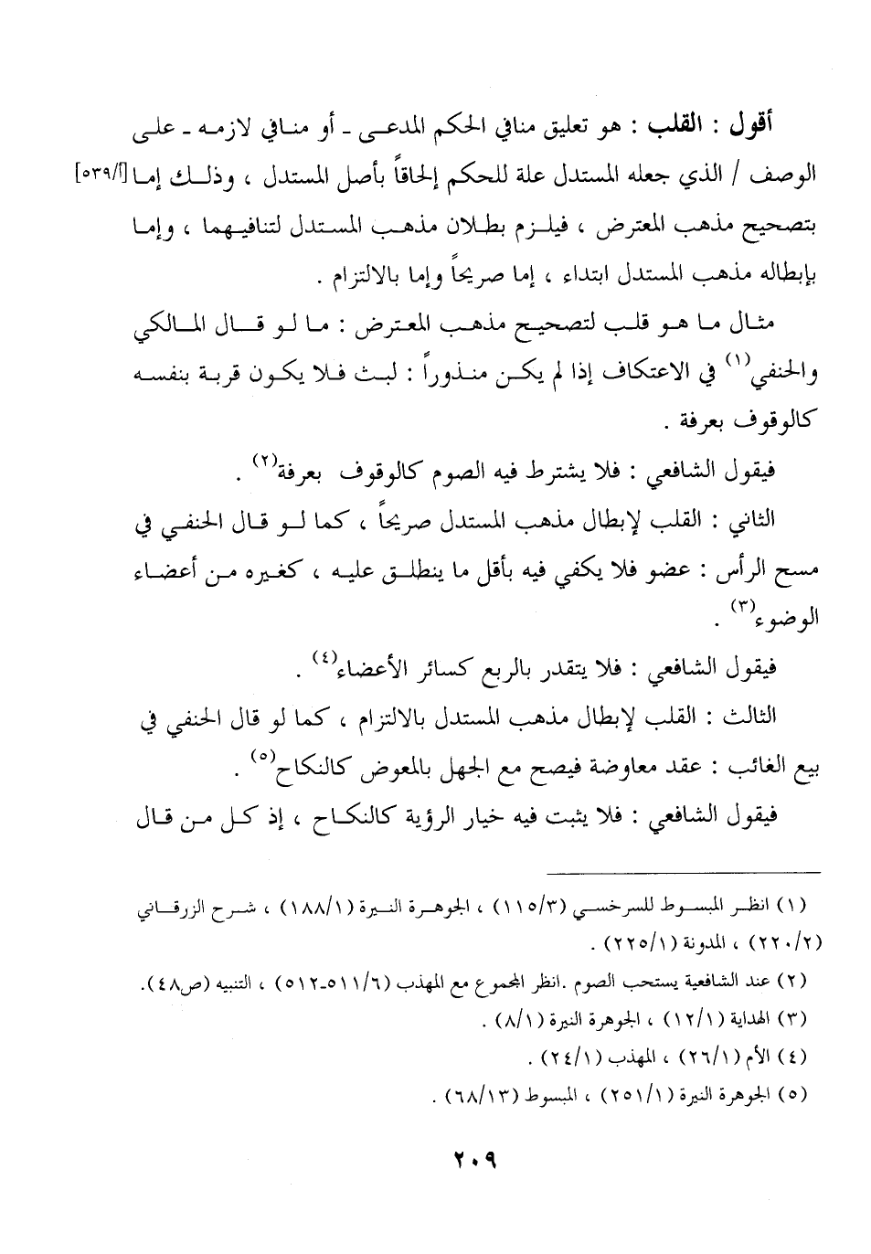 الثاني: القلب لإبطال مذهب المستدل صريحا، كما لو قال الحنفي في مسح الرأس: عضو فلا يكفي فيه بأقل ما ينطلق عليه، كغيره من أعضاء الوضوء.