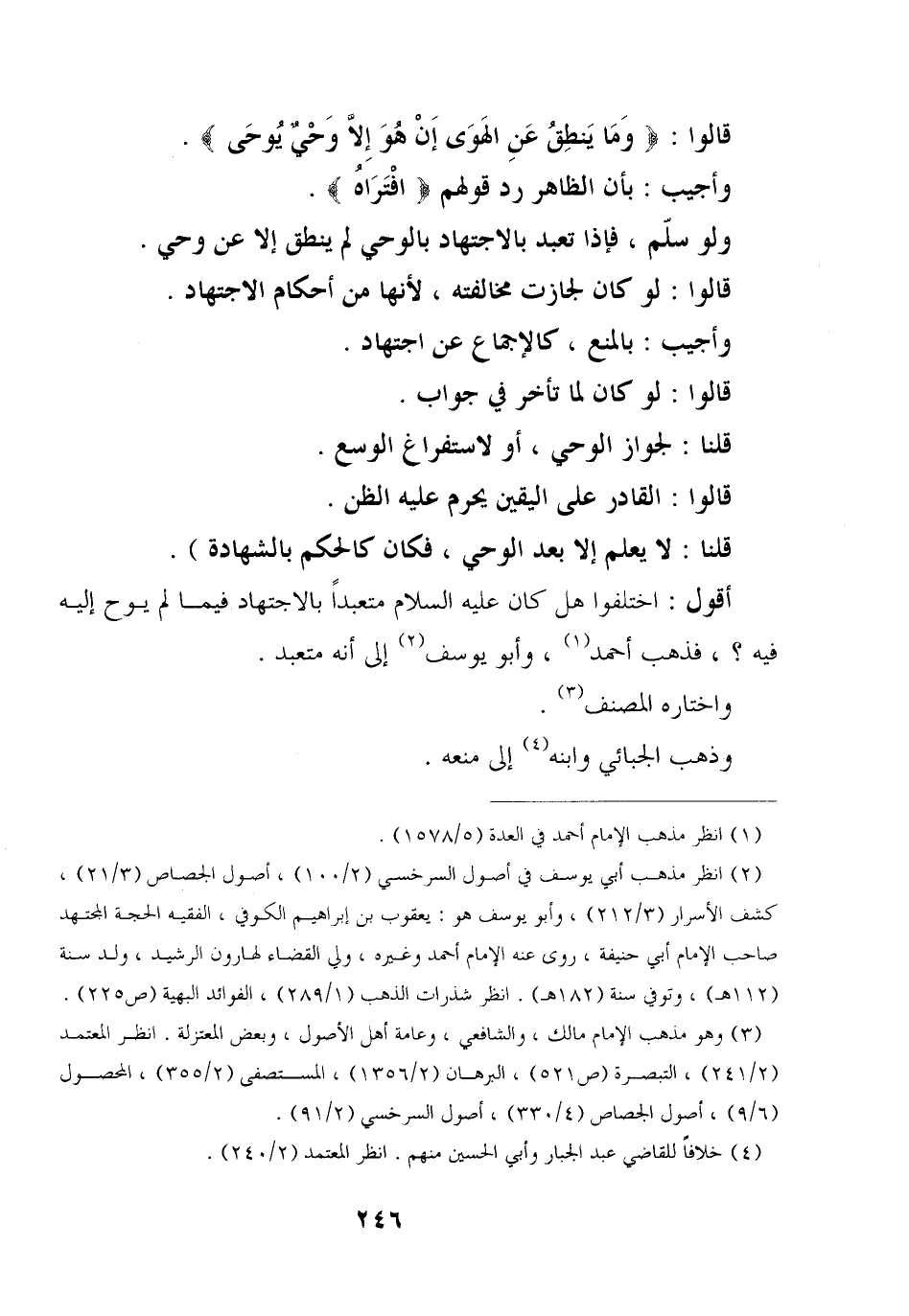 أقول: اختلفوا هل كان عليه السلام متعبدا بالاجتهاد فيما لم يوح إليه فيه؟ ، فذهب أحمد، وأبو يوسف إلى أنه متعبد.