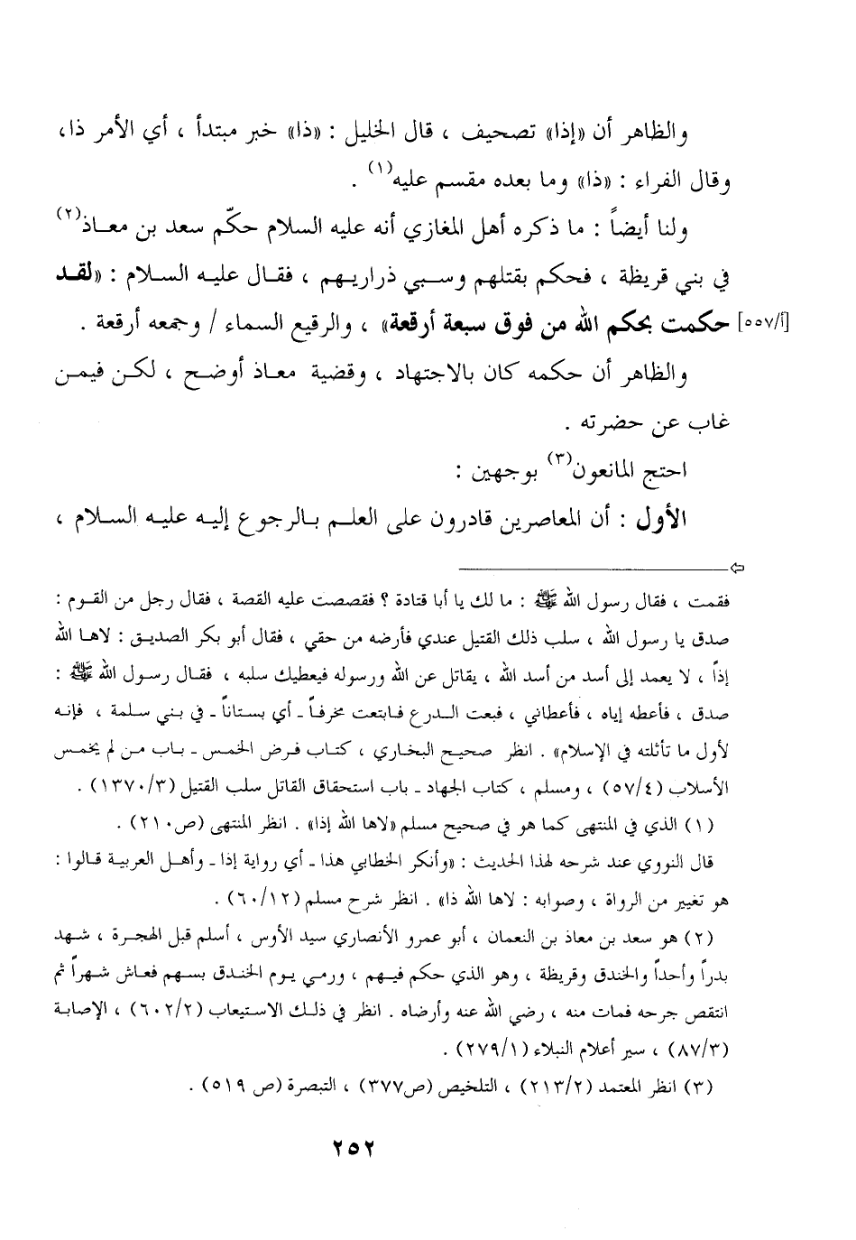 ولنا أيضا: ما ذكره أهل المغازي أنه عليه السلام حكم سعد بن معاذ في بني قريظة، فحكم بقتلهم وسبي ذراريهم، فقال عليه السلام: "لقد حكمت بحكم الله من فوق سبعة أرقعة"، والرقيع السماء/ وجمعه أرقعة.